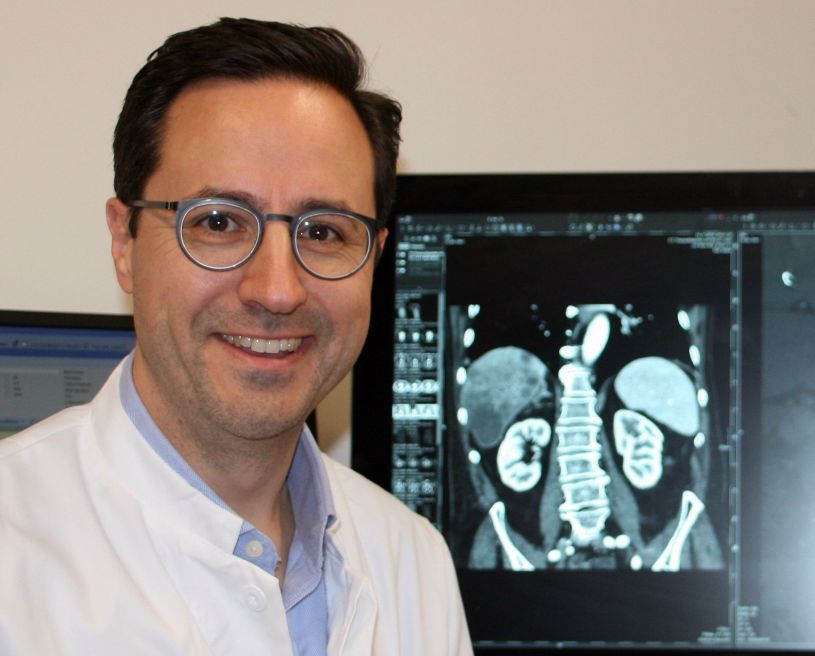 Genug gelernt? Nein, so tickt Thorsten Klink nicht. Am Insel-Spital im schweizerischen Bern fokussierte er sich auf die Magnetresonanztomographie (MRT), forschte auf dem Gebiet der Diagnostik von rheumatologischen Erkrankungen und qualifizierte sich in der kardiovaskulären Bildgebung. „Und ab 2014 stand bei mir die interventionelle Spezialisierung im Mittelpunkt", sagt Klink. Dieses Spezialgebiet umfasst den therapeutischen Teil des Faches Radiologie. Bei der interventionellen Radiologie werden unter Bildsteuerung per Ultraschall, CT, MRT oder Angiographie therapeutische Eingriffe beispielsweise im vaskulären und biliären System (z. B. bei arterieller Verschlusserkrankung oder tumorbedingtem Verschluss des Gallengangsystems) sowie in parenchymatösen Organen (z. B. Radiofrequenzablation von Lebermetastasen) vorgenommen.